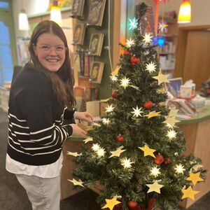 Seit dem 24. November 2025 steht wieder der Wunschbaum fürs Weinhübler Kinderheim in unserer Görlitzer Buchhandlung. Zum ersten Mal hat unsere Azubine Dorothea fleißig beim Schmücken geholfen. Neu ist die dezente Deko, für die weiße Herrnhuter "Minis" sorgen. Unverändert trägt der Wunschbaum aber auch jene Papiersterne, auf die es ganz wesentlich ankommt. Denn darauf sind Weihnachtswünsche von den Kindern des Kinderheims Janusz-Korczak-Haus notiert. Mit Hilfe unserer Kunden können diese in den nächsten Wochen wahr werden.