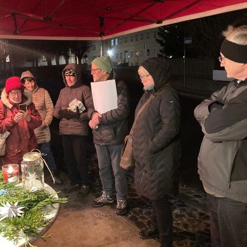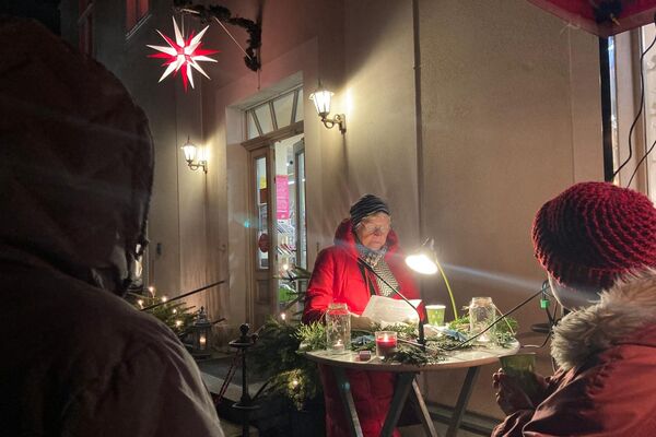 Wie wurde Weihnachten vor 110 Jahren in aller Welt gefeiert? Das war am 18. Dezember in einer Open-Air-Lesung vor unserer Herrnhuter Buchhandlung zu hören. Um 17 Uhr gestaltete unser Herrnhuter Literaturkreis den Lebendigen Adventskalender der Brüdergemeine Herrnhut.