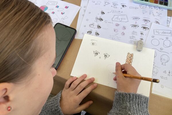 Die Schülerinnen und Schülern führten kurz in die Welt des Mangas ein und gaben Einblicke in seine Entstehung, Geschichte und Genrevielfalt. Im Mittelpunkt des Abends standen dann die von den Kindern und Jugendlichen selbst entwickelten Geschichten sowie deren zeichnerische Umsetzung bis zum jetzigen Zeitpunkt.
