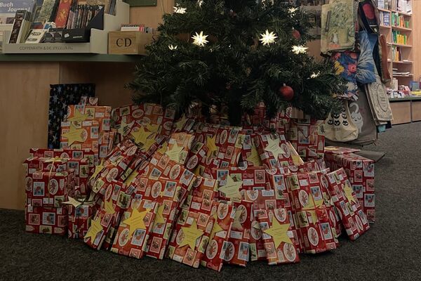 Die Aktion noch einmal kurz erklärt: Jedes Jahr traditionell nach dem Totensonntag stellt unsere Görlitzer Buchhandlung im Kassenbereich den "Wunschbaum" auf. Diesen zieren Papiersterne, die mit einem Wunsch der Kinder und Jugendlichen im Görlitzer Kinderheim "Janusz-Korczak-Haus" beschriftet sind. Der Wert variiert zwischen 5 und 40 Euro. Neben viiielen Büchern und Spielen stehen auch DVDs und Herrnhuter Sterne hoch im Kurs. Unter diesen Wünschen können unsere Kunden einen auswählen, den sie erfüllen möchten. Nachdem sie bezahlt haben, packt unser Team das Geschenk noch schick ein. Dann erhält es ein Plätzchen unterm Baum, wo sich all die guten Taten unserer Kundschaft bis zum Fest sammeln.